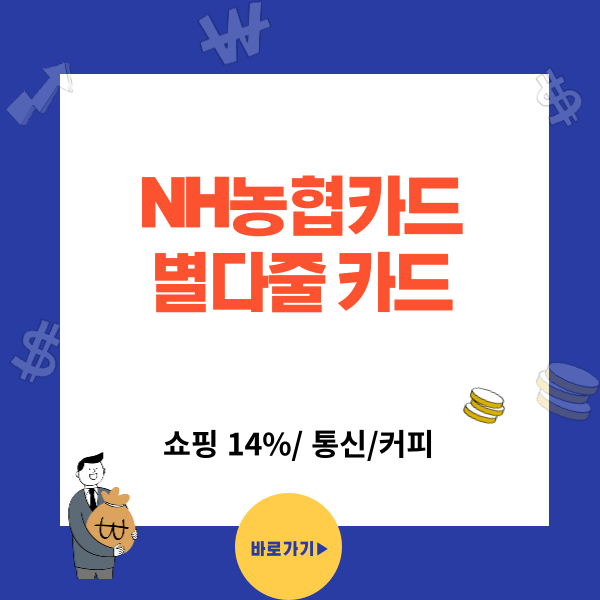 NH농협카드 별다줄카드의 혜택은 아래글을 통해서 자세하게 확인해 보시길 바랍니다.